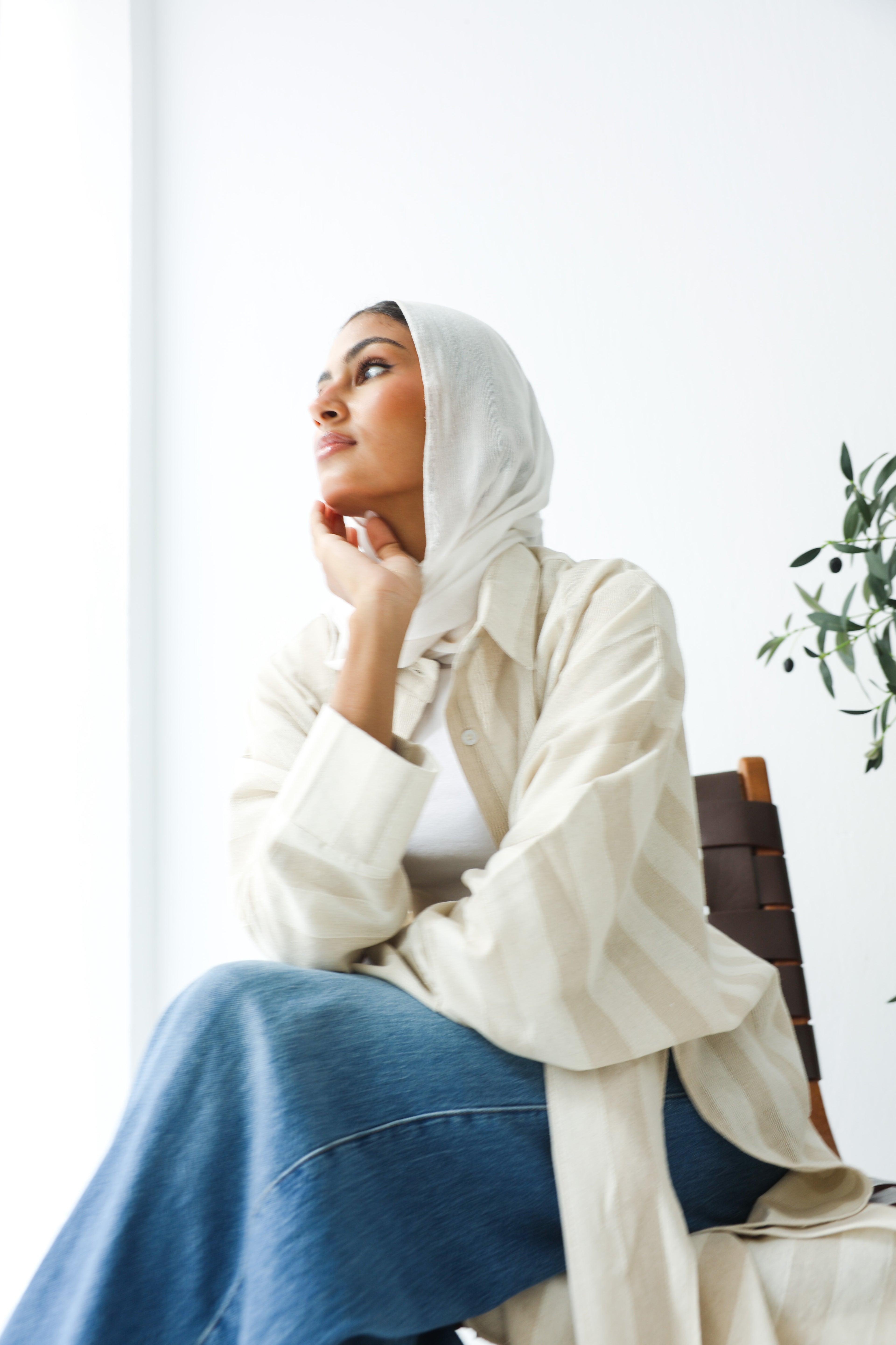 The linen blazer ( in grey )