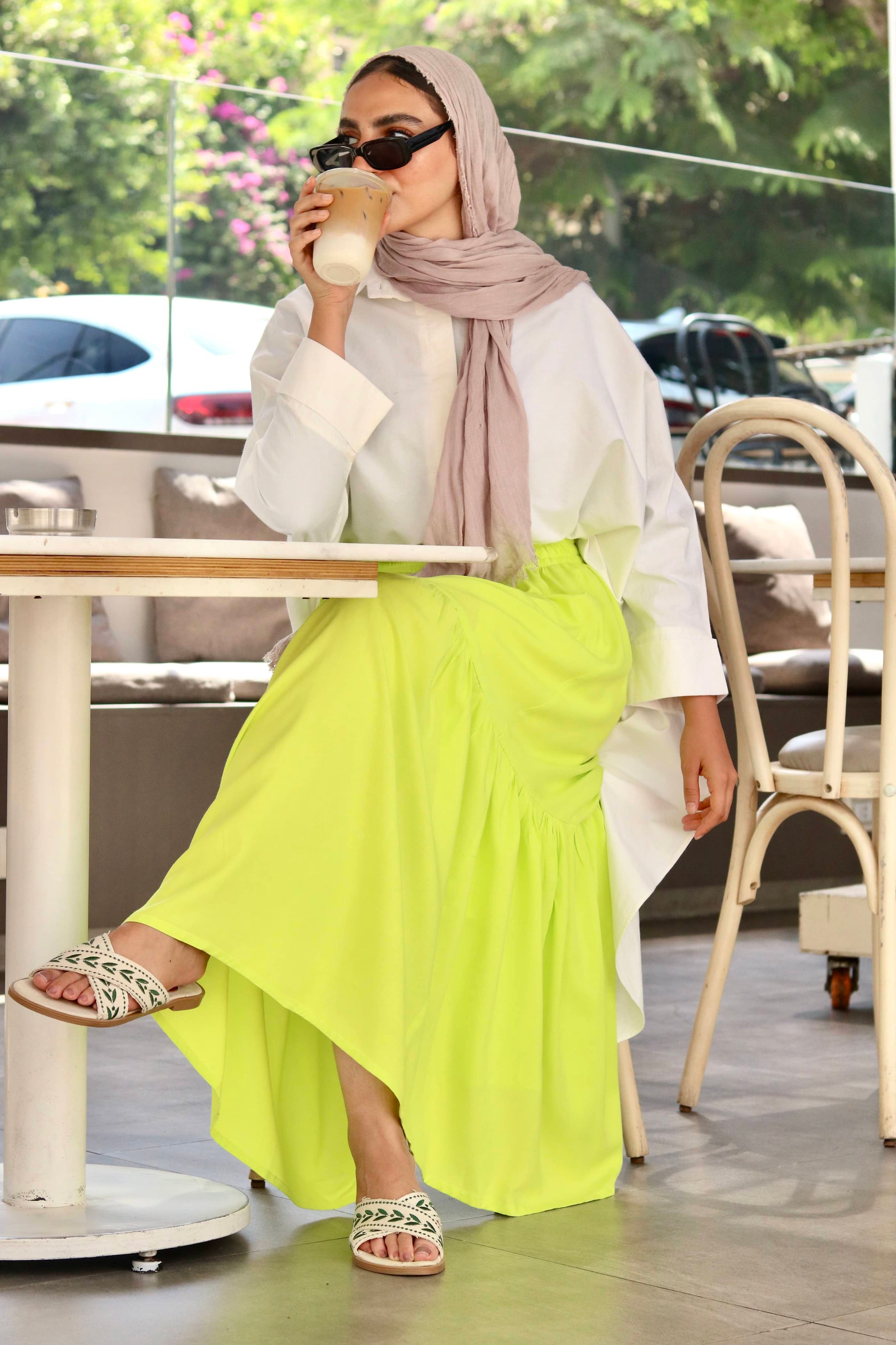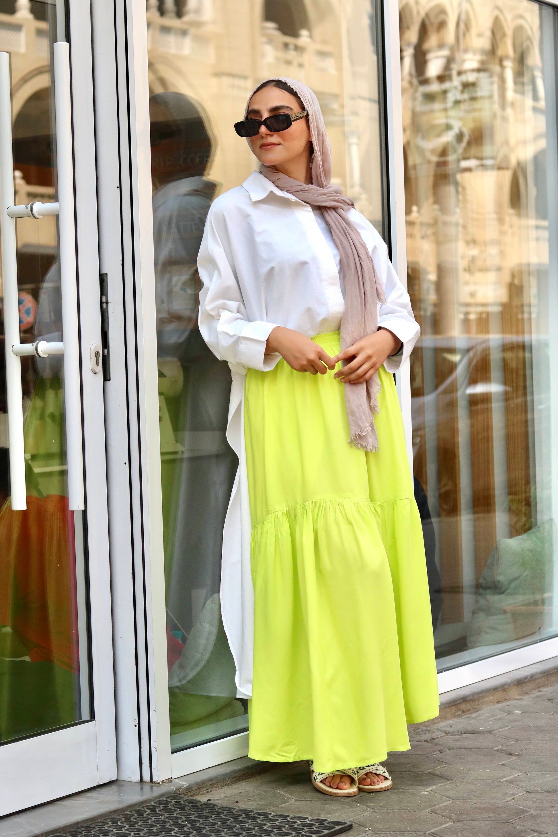 SUN SKIRT is here, adding a pop of color and playful energy to your summer wardrobe. Shop it now in lime and fuchsia
